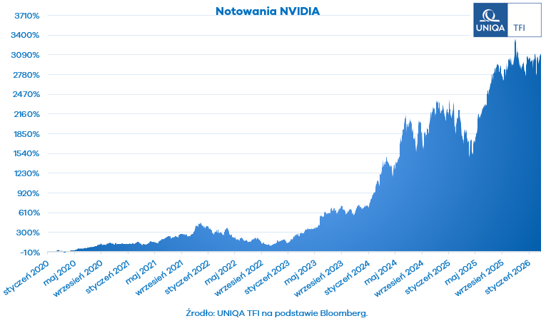 Pierwsze tygodnie nowego roku przyniosły inwestorom z sektora technologicznego wyraźne ochłodzenie nastrojów. Kursy przestały rosnąć w hurraoptymistycznym tempie, a na rynku pojawia się coraz więcej niepewności i rozbieżnych interpretacji. Najlepiej pokazuje to reakcja - a właściwie jej brak - na wczorajsze wyniki Nvidii. Co na pierwszy rzut oka może dziwić, bo liczby zaprezentowane przez giganta są naprawdę imponujące. Spółka o kapitalizacji sięgającej 4,7 bln USD pokazuje dynamikę, której nie powstydziłyby się typowe spółki growth. Czy nie tego właśnie oczekuje rozgrzany do czerwoności rynek?